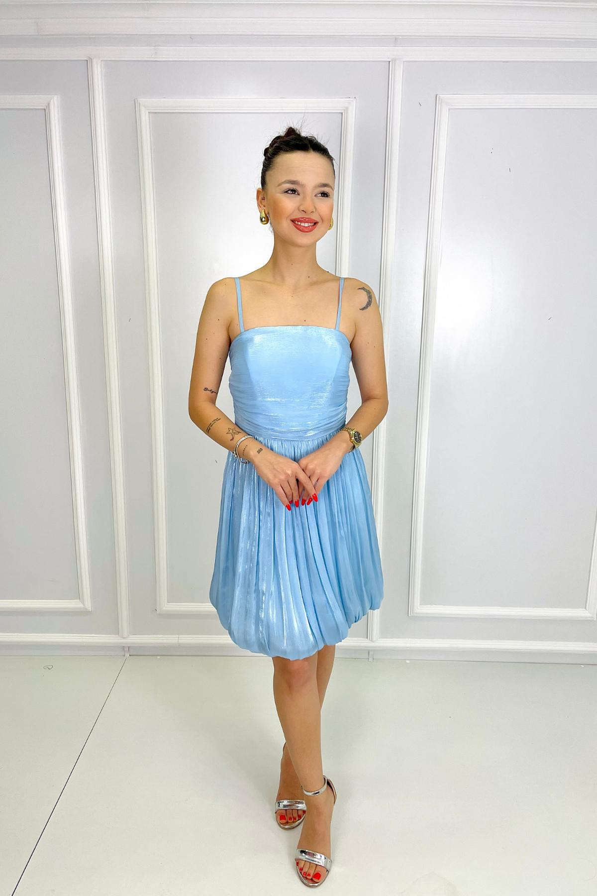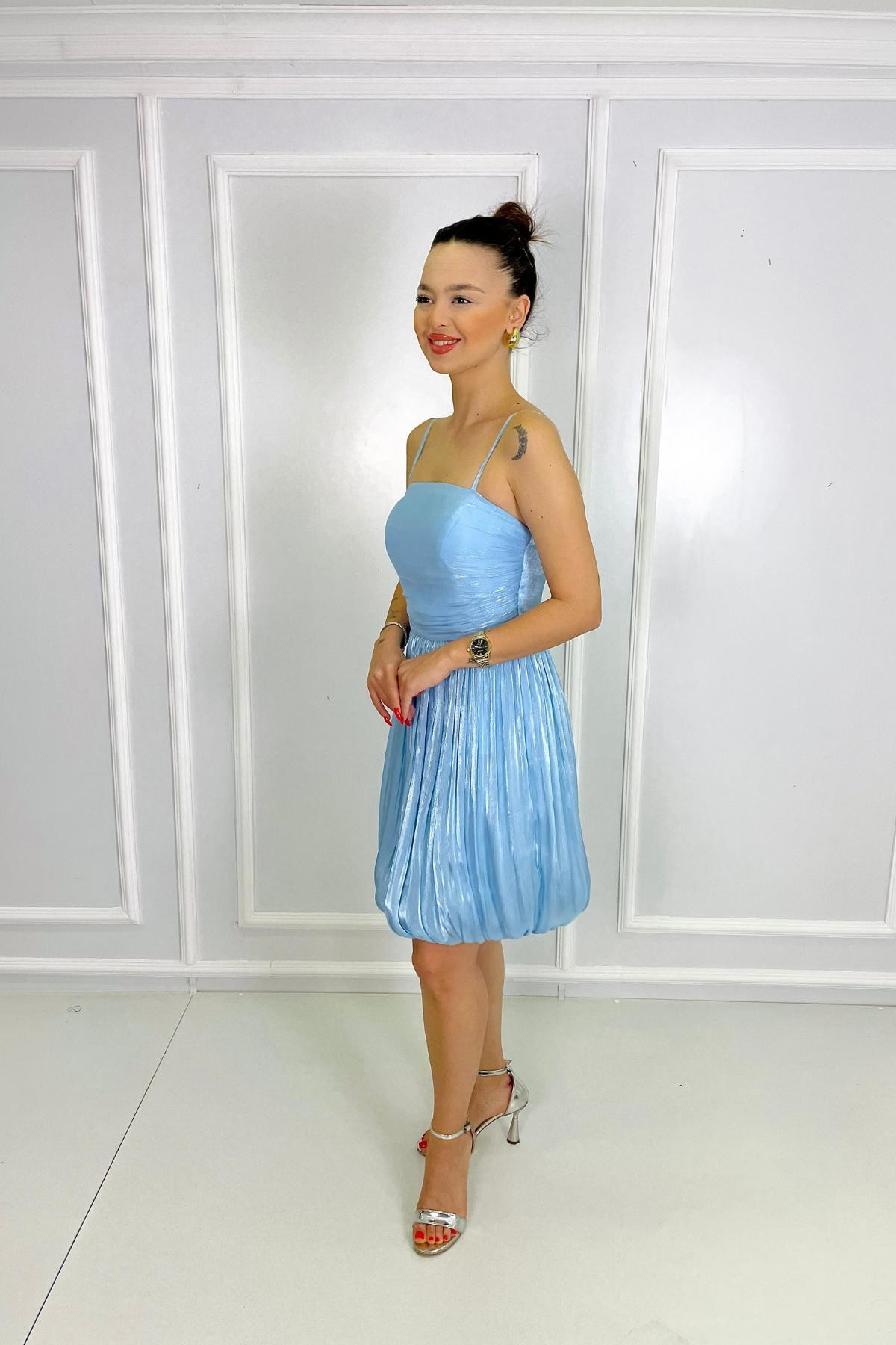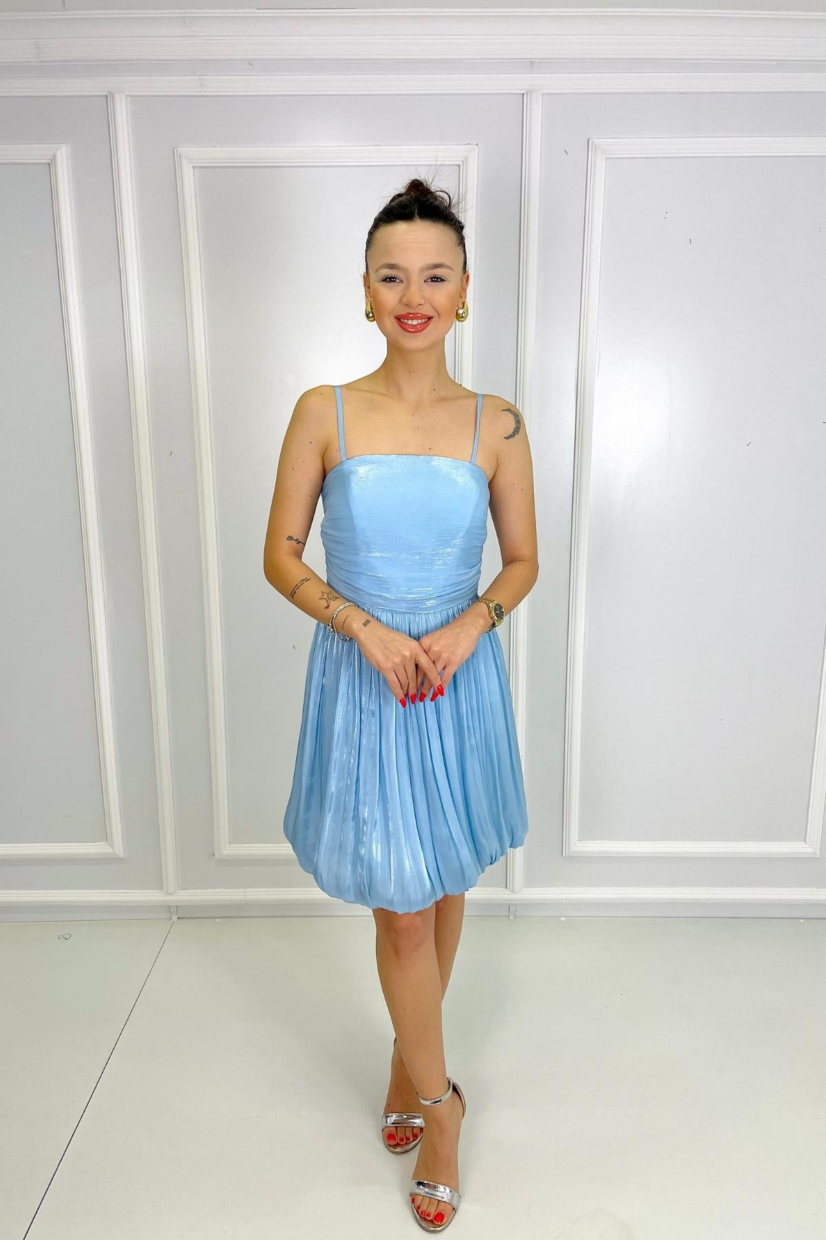 İp Askılı Eteği Balon BEBE MAVİSİ Abiye