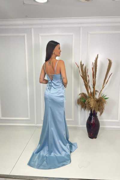Korseli İp Askılı AQUA MAVİ Tasarım Abiye